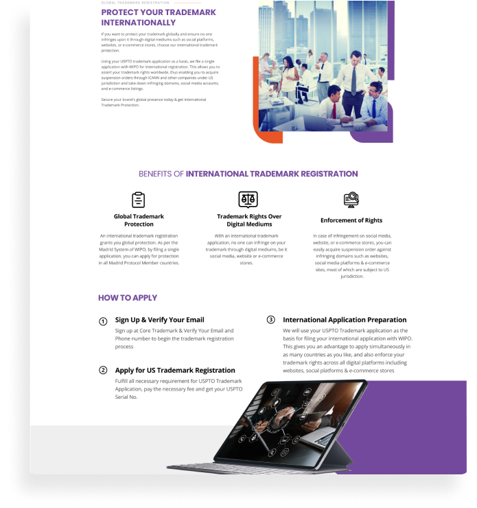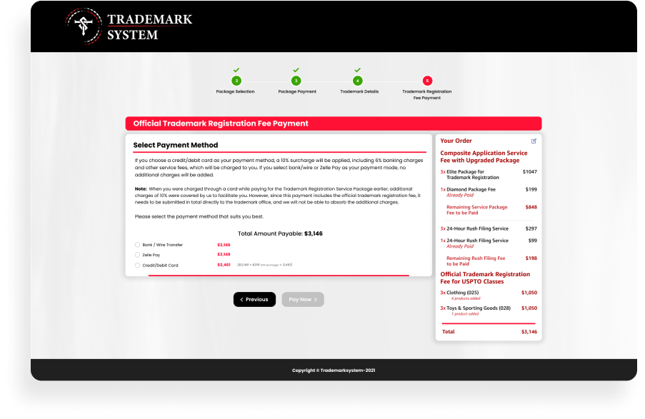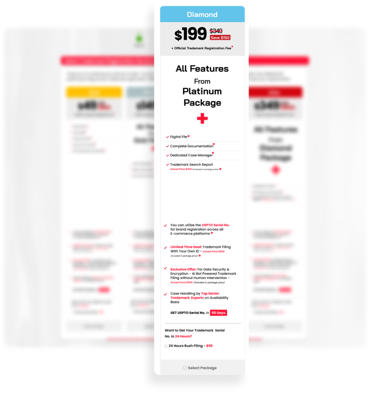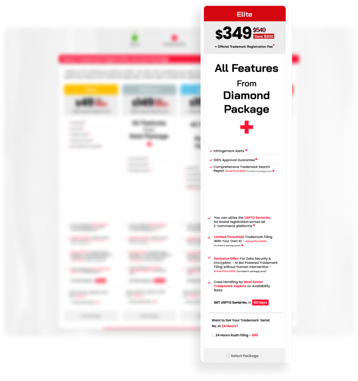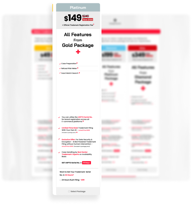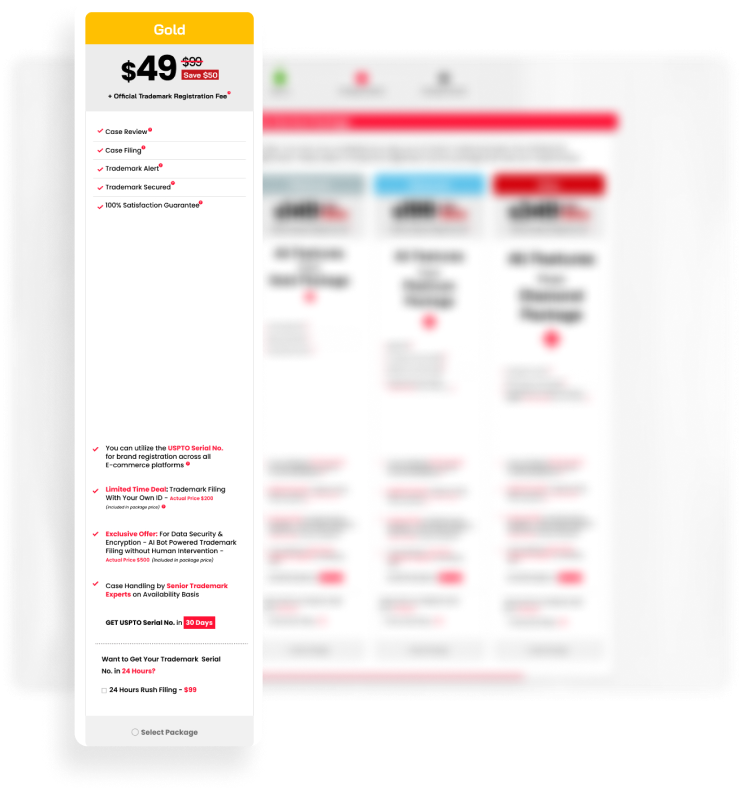 The game changer in our Packages is the Search Report. Our comprehensive trademark search report ensures there is no conflict with an existing trademark and provides a 100% approval guarantee for your trademark application.