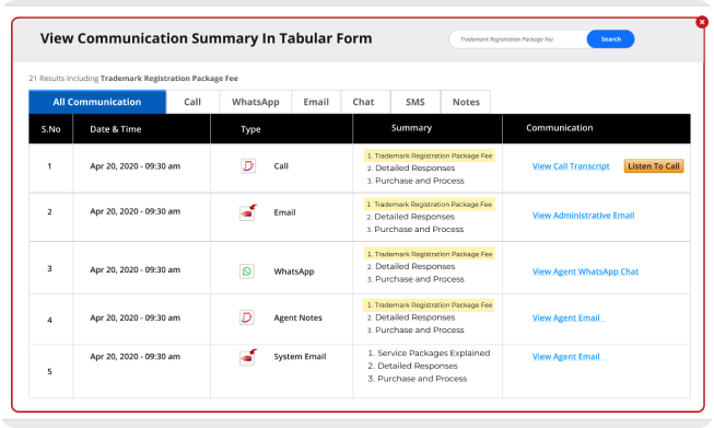 - Notes: Shows the last comments made by agent on specific leads helping with a quick recall.