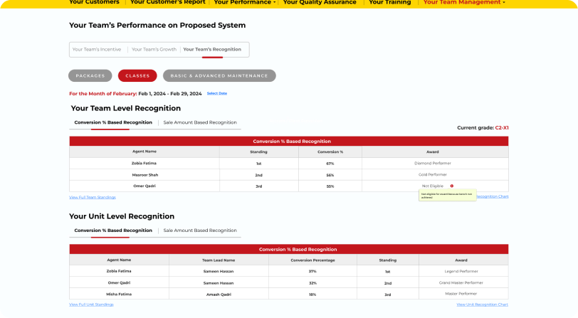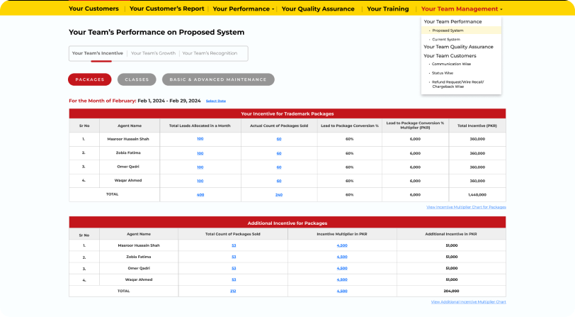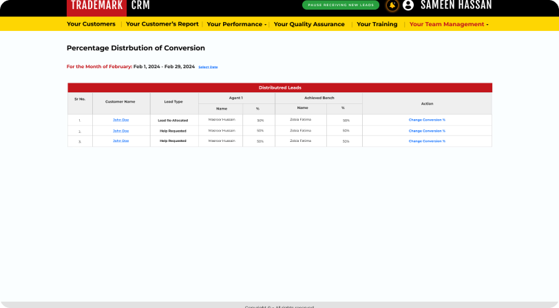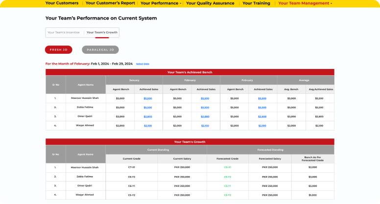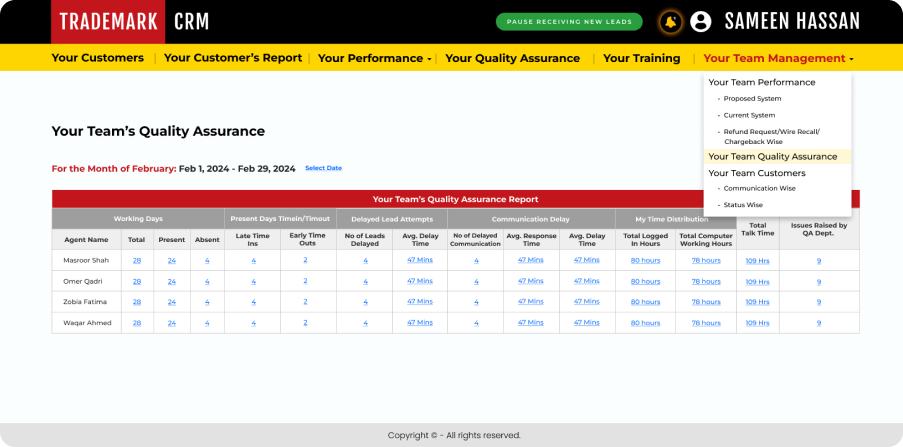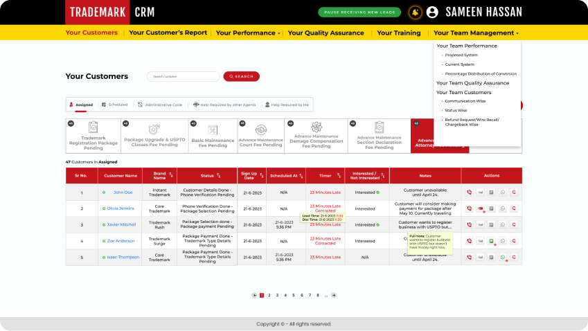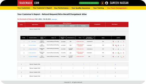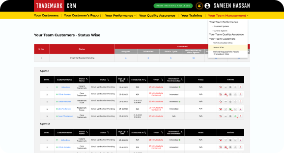 Your Team Customers - Communication Wise screen provides a structured and detailed view of the status of customer cases handled by each agent in the team.