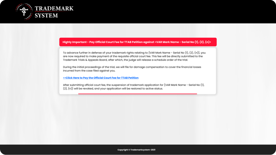 In the rare event that a petition is filed against a customer, we handle its processing and file an opposition with the Trademark Trial and Appeal Board (TTAB), as part of our Advanced Trademark Maintenance Service, which includes: