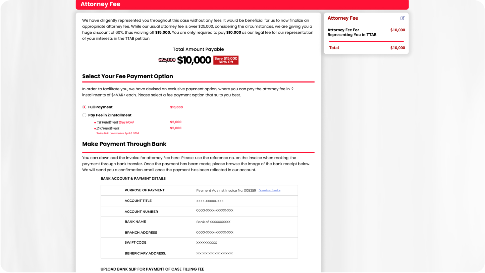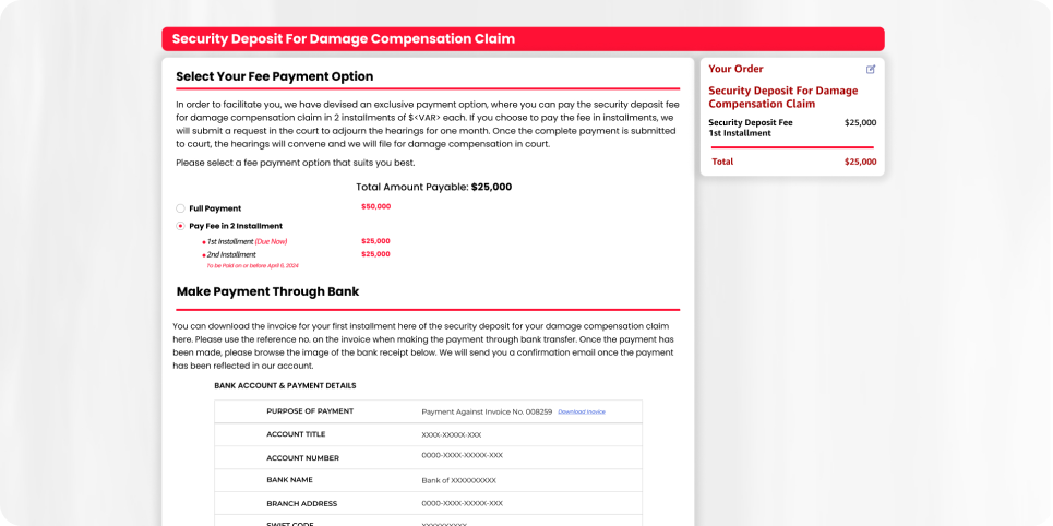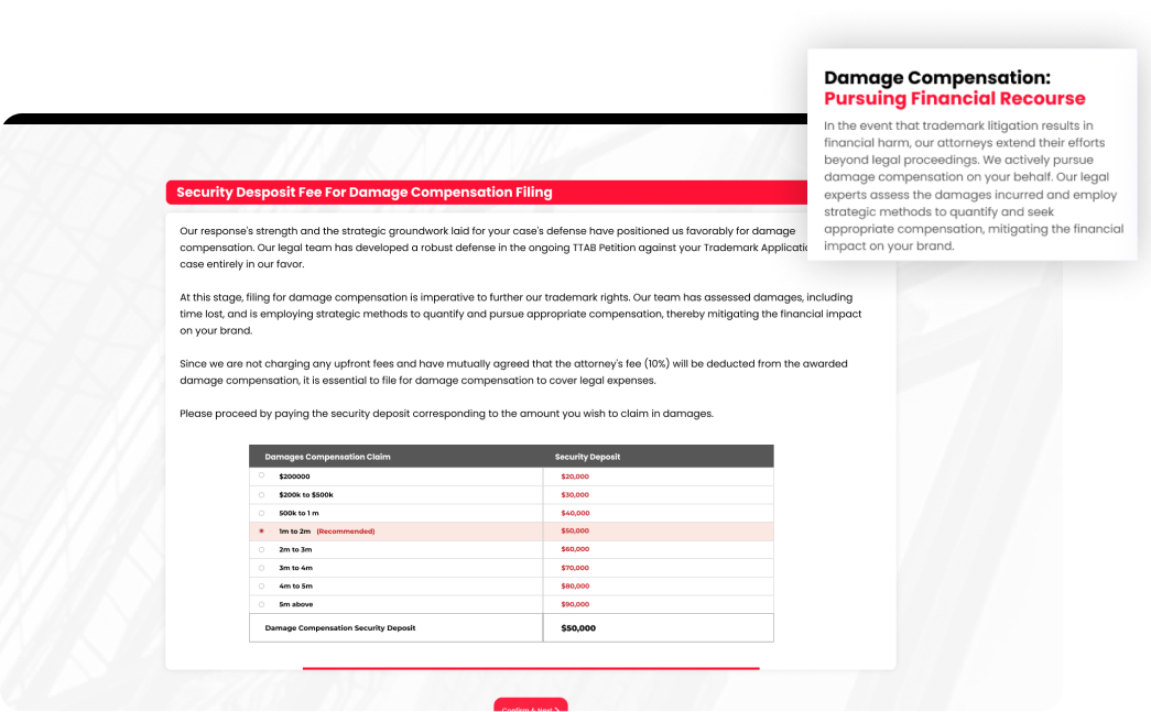 - Damage Compensation Filing to claim compensation for financial harm resulting from trademark litigation.