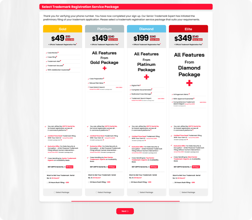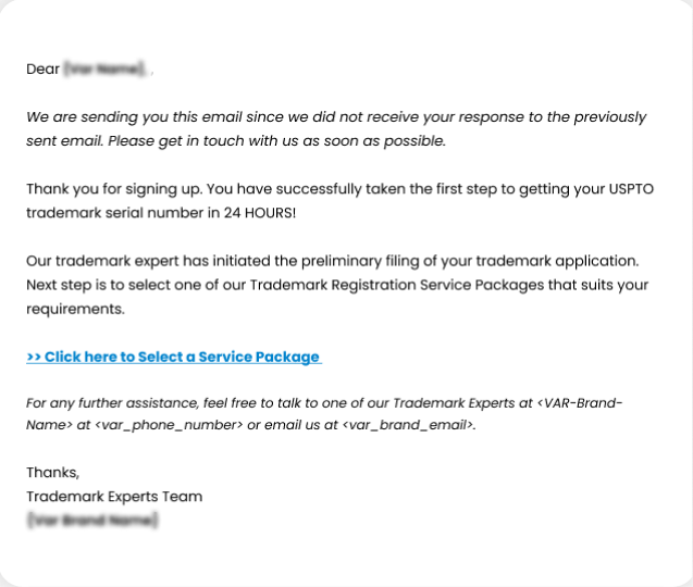 - Guide the customer to purchase the trademark registration service package. A detailed view of our packages has already been given to you in the brand training.
