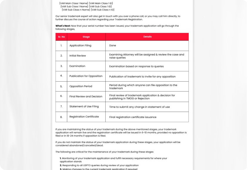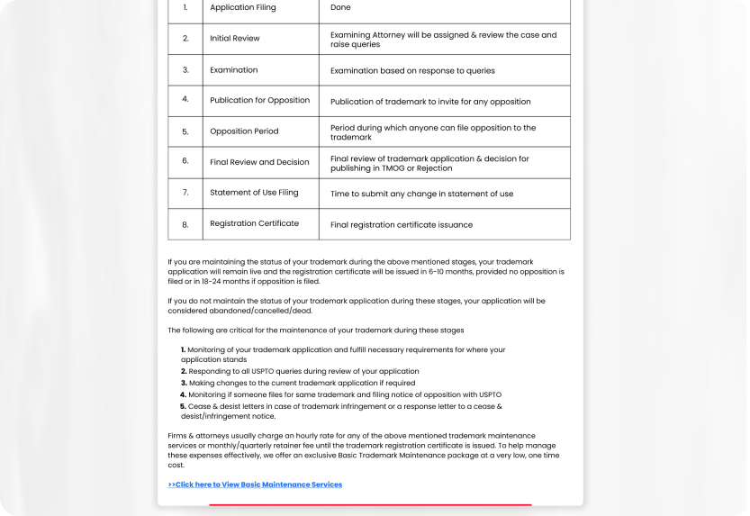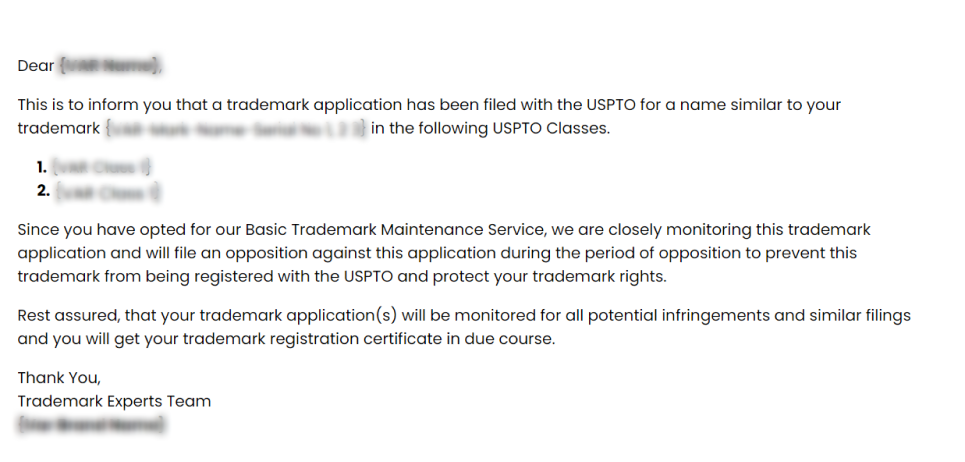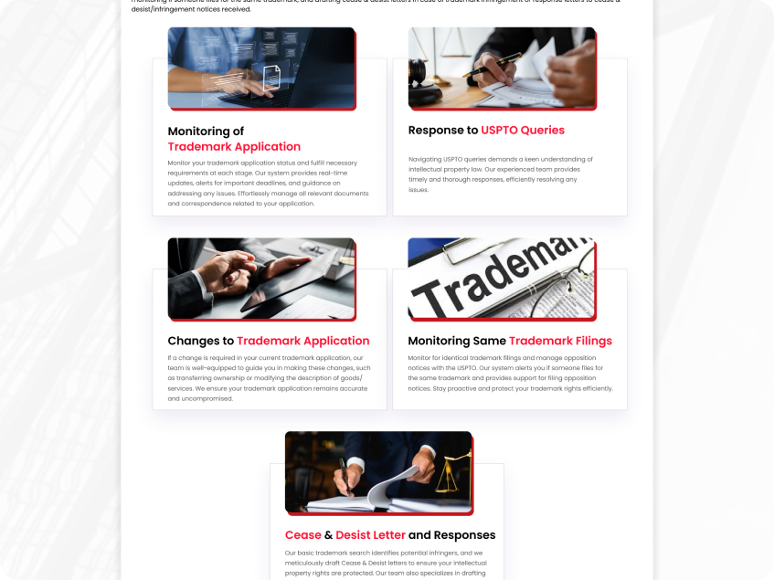 If someone infringes upon the trademark of the customer, we also draft cease & desist letters to be sent to the potential infringers.